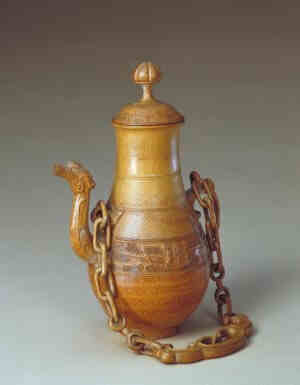 此壶竹刻技艺精湛,未见粘接痕跡,整体造型及纹饰仿商周青铜器,可见清中期好古拟古之风尚。